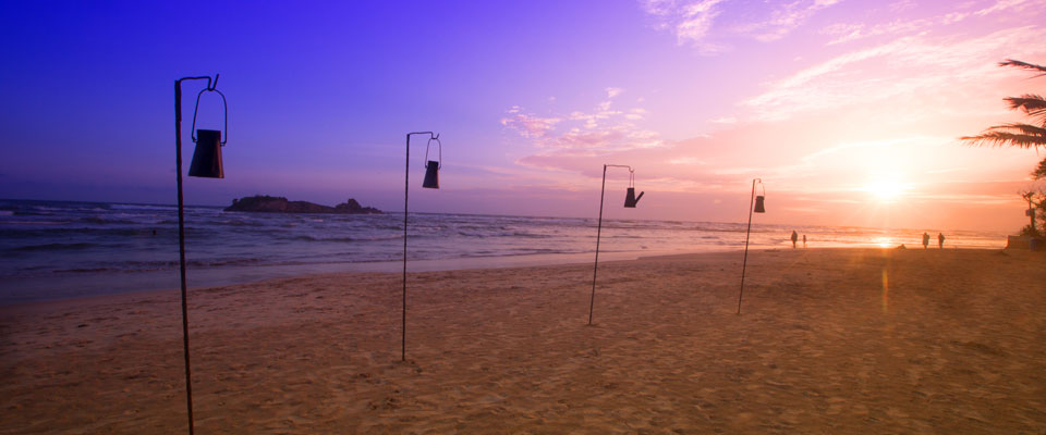 Set the tone to a romantic evening with your loved one as you dine on the Golden Mile Beach of Sri Lanka with the sounds of the breaking waves as your background music and beautiful sunset painting the skies at Beruwala in a cascade of colors.